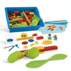 The Early Machines Set provides eight mechanical models and eight double-sided, full-colour building instructions. The set includes gears, levers, pulleys, wheels and axles, as well as a plastic punch-out sheet with eyes, sails, scales and wings. Includes blue storage bin.