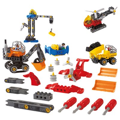 The Tech Machines Set enables students to take their first steps into science and technology! With this fun and engaging set, students enhance their problem-solving skills while improving communication skills. By using the popular play theme of travel, students learn about machines, the tools used to work on machines, and their functions. The Tech Machines Set comes with screwdrivers, integrated screws that click into place, reels, hooks, scoops, and propellers. An activity pack is also included that features story starters, problem-solving tasks, and full-color illustrations. Ages 3+.