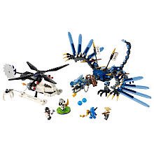 bFly the LEGO Ninjago Lightning Dragon Battle (2521) to rescue Sensei Wu!/bFrakjaw and Kruncha have captured Sensei Wu and stole the nunchucks of lightning with their helicopter. Help Jay and the fearsome Lightning Dragon to rescue him and retrieve the golden weapon before they escape into the Underworld! Beware of the helicopters snapping jaws and flick missiles!The LEGO Ninjago Lightning Dragon Battle (2521) includes * 4 (No Suggestions) Jay, Sensei Wu, Frakjaw and Kruncha * Weapons include 2 golden spears, 2 large spears, silver mace, sword, golden blade, staff and nunchucks of lightning * Spit lethal lightning balls with the Lightning Dragon! * Battle for Spinjitzu glory with the spinner! * Snap the Lightning Dragons jaws! * Turn the crank for real rotorspinning action! * Battle with the Lightning Dragons poseable wings, tail and limbs! * Lightning Dragon measures over 18 (45cm) wide and 19 (48cm) long * Helicopter measures over 4 (10cm) wide and 10 (25cm) long